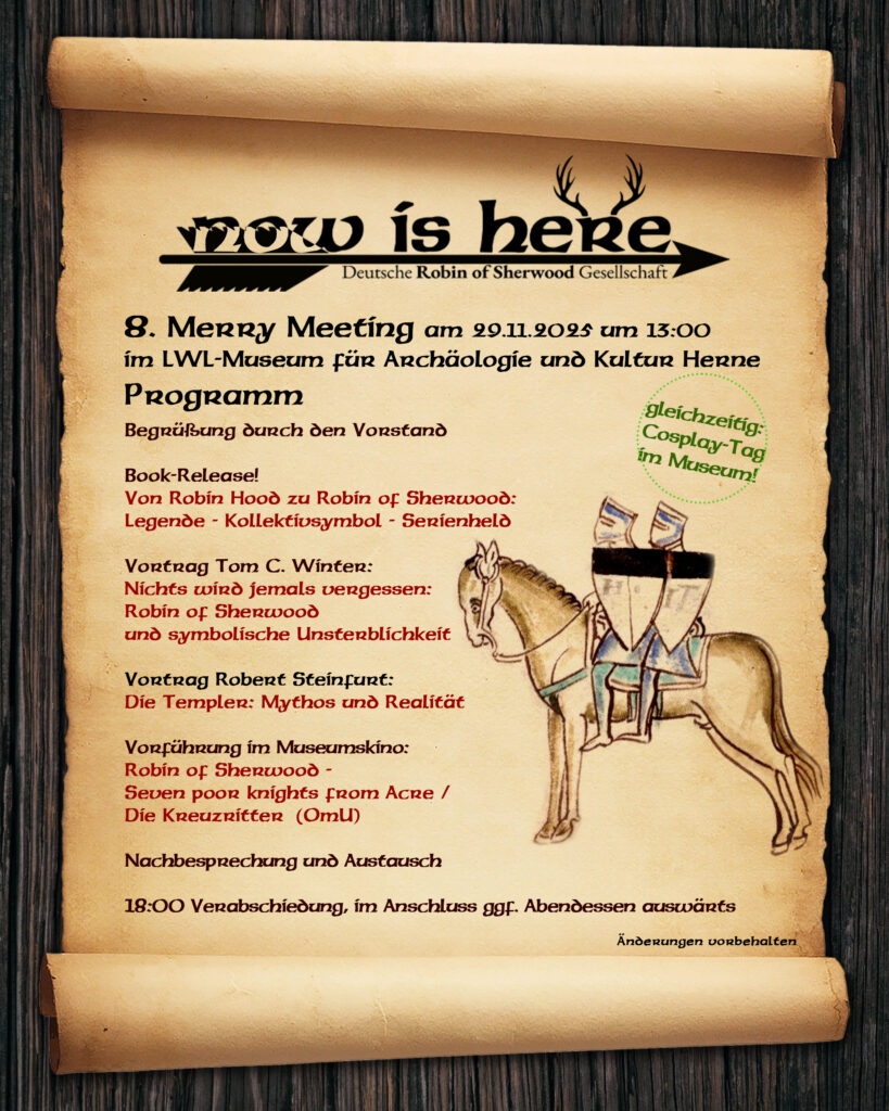 Einmal im Quartal treffen wir uns zum Merry Meeting im LWL-Museum für Archäologie und Kultur in Herne, denn „Herne beschützt uns“. Bei den Merry Meetings genießen wir gemeinsam eine Folge der Serie im Museumskino und vetiefen die Themen der Episode mit Vorträgen und Diskussion.