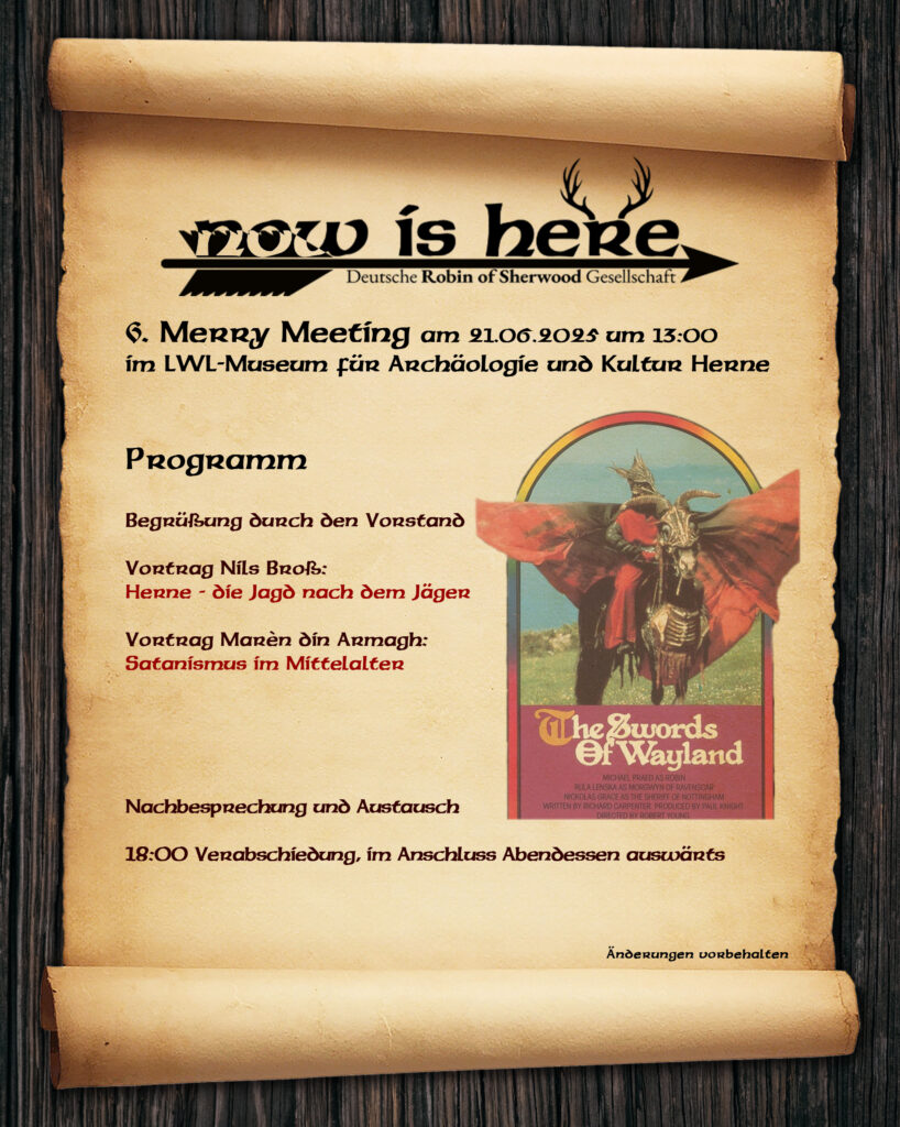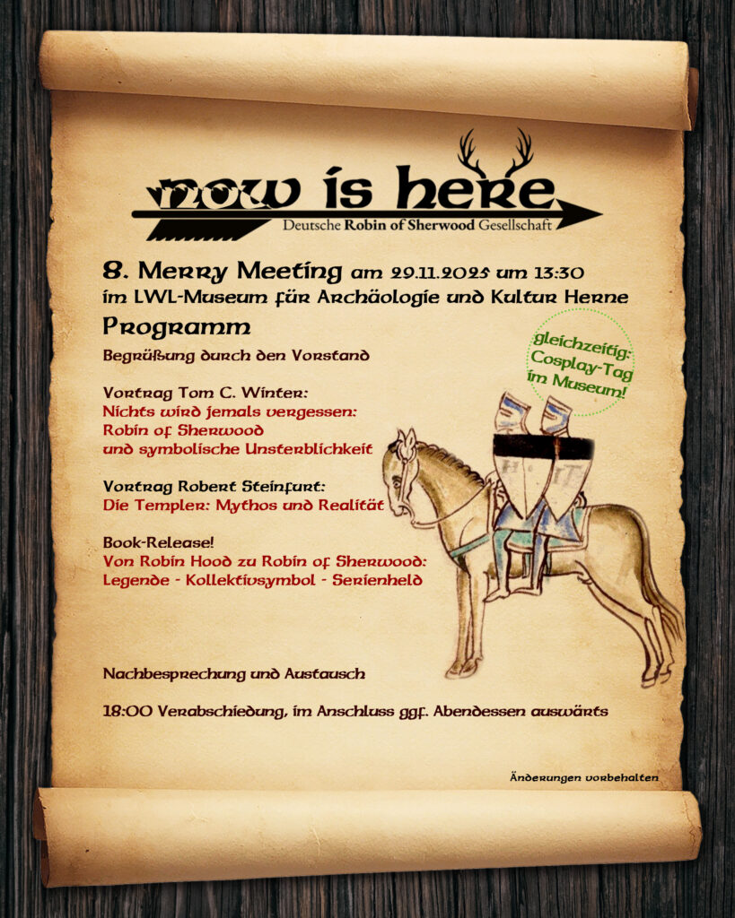 Einmal im Quartal treffen wir uns zum Merry Meeting im LWL-Museum für Archäologie und Kultur in Herne, denn „Herne beschützt uns“. Inhaltlich orientieren sich die Merry Meetings an einer Folge der Serie. Wir vetiefen die Themen der Episode mit Vorträgen und Diskussion.